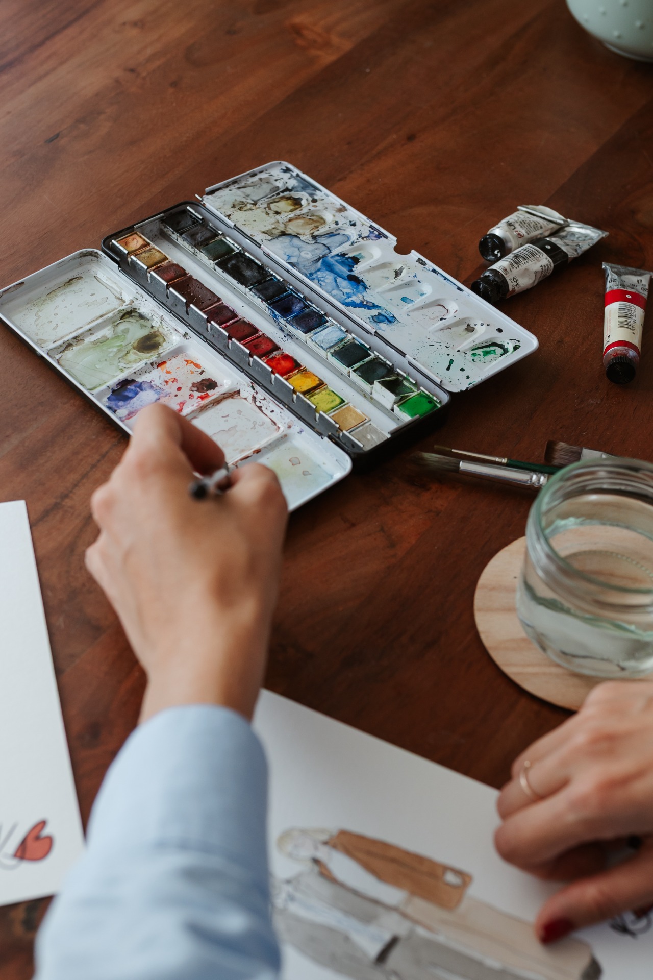Akvarelový obraz jednotlivce / páru s detaily